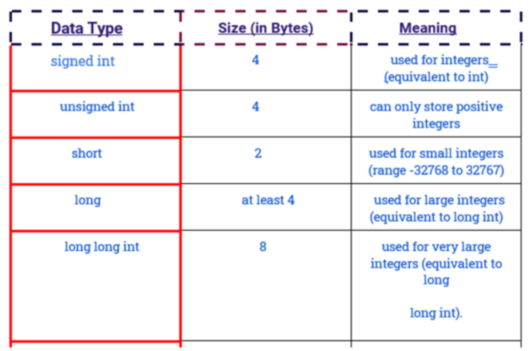 ● It can store values from -2147483648 to 2147483647.