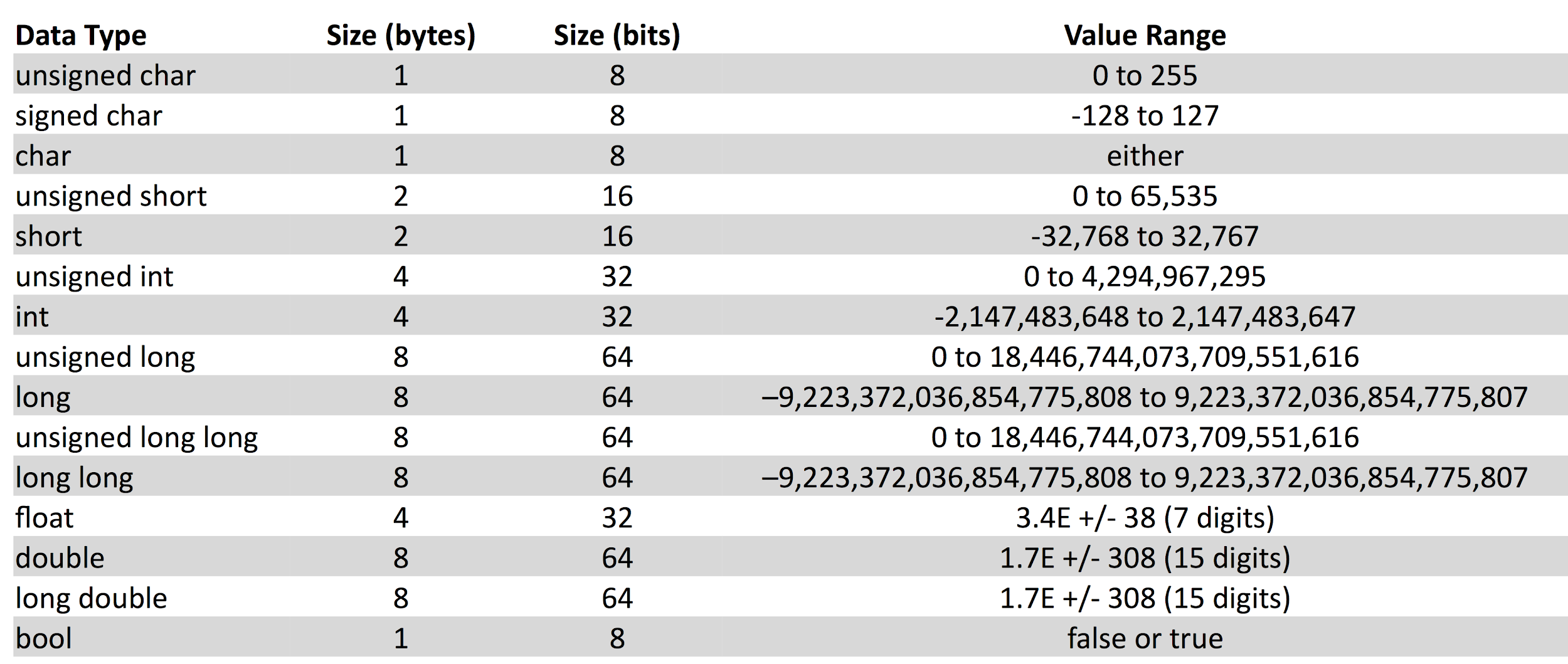 types occupy different size of memory.