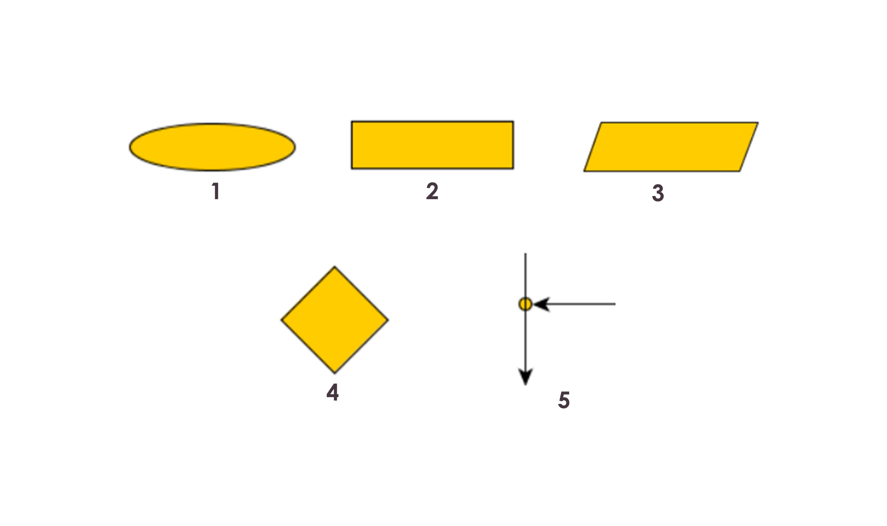 1.The first figure is oval. Also could be met as an “ellipse”, ”circle”, but it has the same meaning. This is the first and the last symbol in every flow chart. I like to use ellipses for “begin” and “end”. When I divide an algorithm in several parts I use small circles for the start/end of each part.